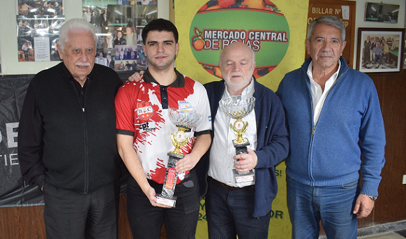 Al centro, Valentino Oliveto y Jorge Moretti, campeón y subcampeón respectivamente, junto a Mario Sureda y el presidente del Centro español, Edgardo Vilar