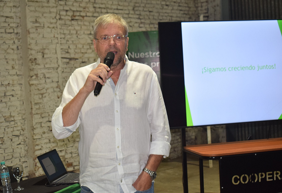 A la hora de dirigirse a los presentes, lo hicieron en primer término el gerente Sergio Rodríguez Santorum, el cual se explayó sobre el quehacer de la cooperativa, remarcando especialmente la Planta de Acopios Rojas, la compra de la ex Planta de Tirabassi, las reformas edilicias de la Casa Central ubicada en Belgrano 122, la adquisición de nuevas unidades (camiones y camionetas) y maquinarias, resaltando el almacenaje de la cosecha récord de trigo.