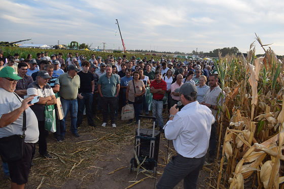 “Primero agradecer a la gente por la convocatoria sumamente interesante, en este caso vamos a ver los ensayos de híbridos de maíz, mostrar el sitio correspondiente a Rojas que forma parte de la Red de AFA, venimos todos los años analizando un montón de sitios y varios híbridos para ver cómo se comportan y sacar información no solo para la recomendación para los asociados, sino también para la elección de los futuros híbridos que van a formar parte de la paleta de híbridos AFA. También tenemos un ensayo de híbridos de sorgo donde van a participar los criaderos (El Sorgal, Advanta y Nussed) que van a mostrar los materiales que forman parte del ensayo. Luego vamos a ir al ensayo de soja (Don Mario, Stine y Nidera, MacroSeed donde tenemos más de 20 variedades de soja, donde también están los criaderos para que también puedan explicar le genética de los mismos”.