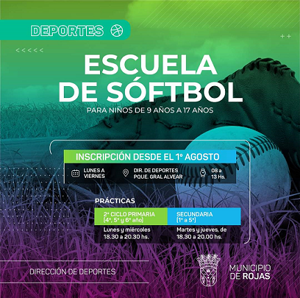 La Dirección de Deportes del Municipio de Rojas informa que a partir del 1º de agosto estará abierta la inscripción para la Escuela de Softbol.