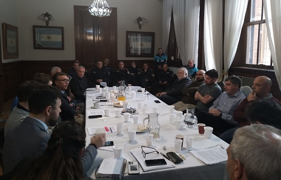Dirigentes de la APREVIDE, la cúpula mayor de la Policía y presidentes de ligas del interior, reunidos el pasado lunes en La Plata